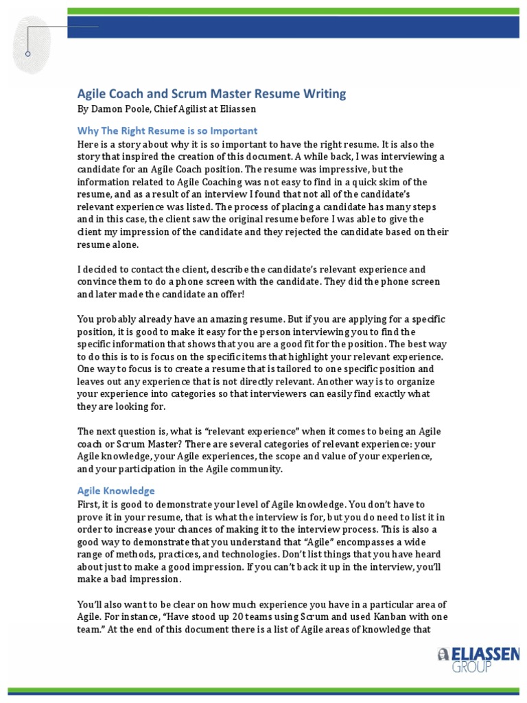 Scrum Master Resume Samples Template Guide : By Damon Poole, Chief Agilist At Eliassen.