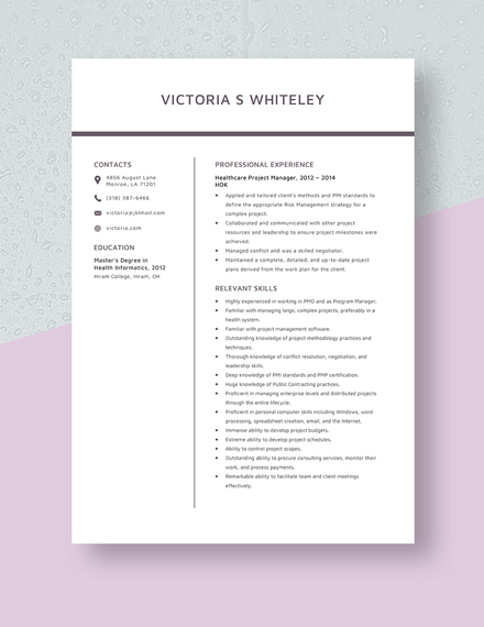 Healthcare Project Manager Resume Template Word Doc Apple Mac Pages Template Net. Project manager with 11years of experience in the healthcare sector. Developed detailed project plans and proposed new solutions that lead to an 8% growth in annual revenue. Monitors the program/project from initiation through delivery, interfacing with stakeholders. Sample healthcare project manager resume. Provided guidance for all stages of healthcare claims and project migration. A talented healthcare it project manager seeking to work in a friendly environment, where i. But, the design needs to be made by a professional. Apply to project manager, special projects manager, head of project management and more! Healthcare project manager role is responsible for interpersonal, finance, training, integration, database, auditing, security, architecture, planning, reporting. Healthcare project managers are employed by medical facilities and are in charge of implementing hospital policies, supervising and guiding staff, hiring new sample resumes for healthcare project managers include qualifications like medical terminology knowledge, organizational skills, attention to. Maintained and managed sharepoint site resources with eppm structure. Responsible for ensuring appropriate resources are allocated and maintained to facilitate the successful completion of the project. Seeking for this responsible position of healthcare project manager and want to work with a leading company where my skills of manager level will come in use. Healthcare project manager resume examples & samples. Making a creative project manager resume might be a great idea.