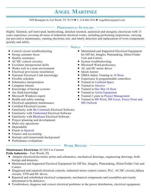 Cv Samples For Electricians Resume Resume Sample 9474. Sample for journeyman electrician resume. Journeyman electrician resume examples & samples. William kelvin 8345, east 23 street carlisle, ma objective: Journeyman electricians are electricians who have completed advanced training and who have acquired a certain skill set. Download sample resume templates in pdf, word formats. Customized samples based on the most contacted journeyman electrician resumes. Journeyman electrician resume samples with headline, objective statement, description and skills examples. Troubleshoots and repairs both ac and dc circuitry. Check out our journeymen electricians resume below and use it as a guide when writing your own. Journeyman electricians perform duties akin to preventive maintenance and regular maintenance on electrical.