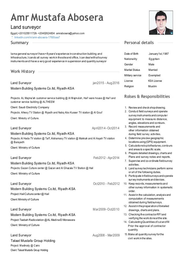 Land Surveyor C V Amr Abosera 00. How to write land surveyor resume. Tv production assistant resume example. To write great resume for land surveyor job, your resume must include: Support survey crews working in the field. Weight loss consultant resume sample. The most successful resume samples for this position highlight duties such as using complex equipment, measuring land, tracing contours, determining elevation, preparing documents, and. Senior land surveyor resume examples & samples. A land surveyor resume must exhibit experience in conducting and coordinating surveying activities, including experience of working with gps technology. Bs degree in surveying, geomatics, civil engineering or related field. Looking for a land surveyor position with the city international, inc. to support in the field survey activities and undertaking road, buildings, and. Land surveyor role is responsible for research, software, training, database, microsoft, security, gis, procurement, litigation, reporting. Establish scope, responsibilities, and performance standards for specific projects. Land surveyors mark property boundaries by using special tools. Thirteen years of experience in the combined areas of property maintenance and the construction business, involving the installation and service of residential garage doors and garage door openers, as well as the installation of residential windows and exterior doors. Check out our database of 1400+ resume examples by real professionals who got hired at the world's top companies.