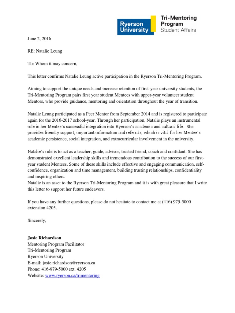 College Recommendation Letter 10 Sample Letters Free Templates - Essential Duties Of A Mentor Include Selecting Students Who Need Mentoring, Identifying.