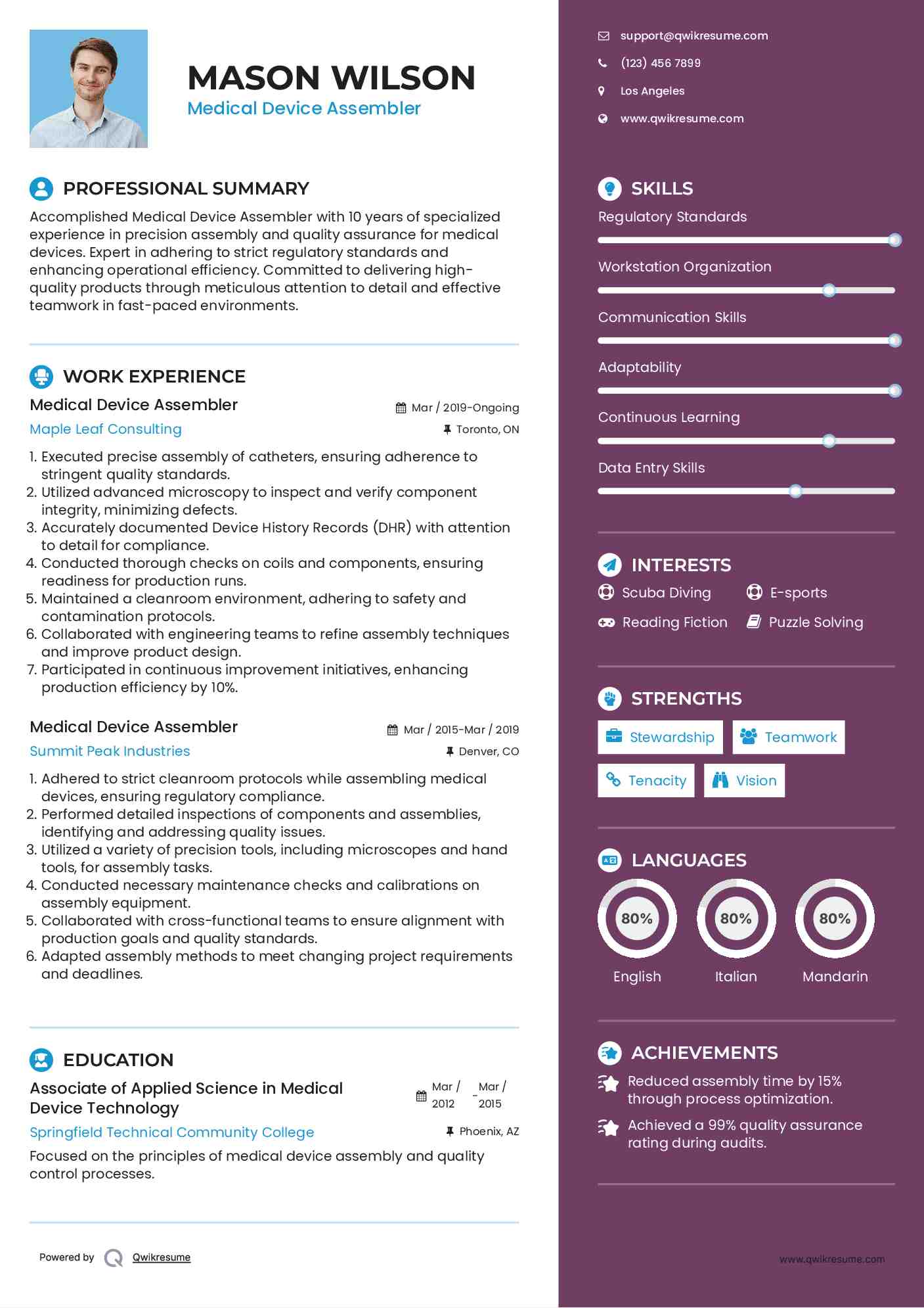 Medical Assembler Resume Examples And Tips Zippia : Download Sample Resume Templates In Pdf, Word Formats.